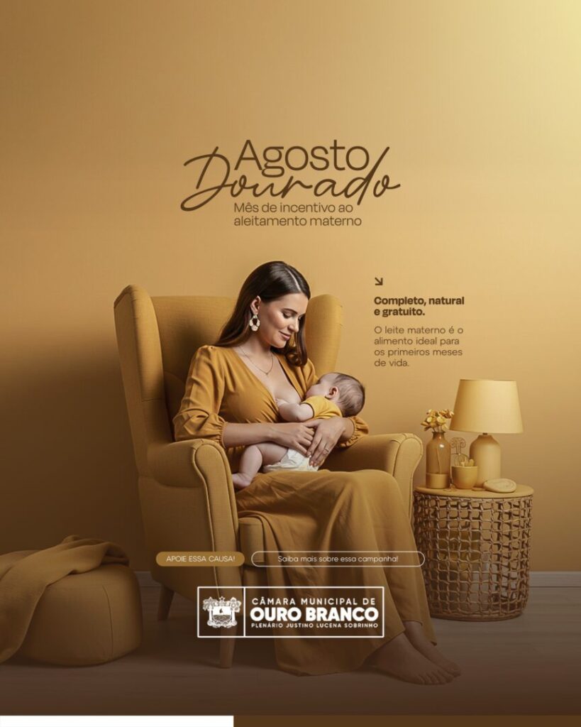 O mês de agosto é conhecido como Agosto Dourado, dedicado à conscientização sobre a importância do aleitamento materno para a saúde e o desenvolvimento das crianças. A cor dourada simboliza o “padrão ouro” de qualidade do leite materno, considerado o alimento mais completo para os bebês nos primeiros meses de vida.