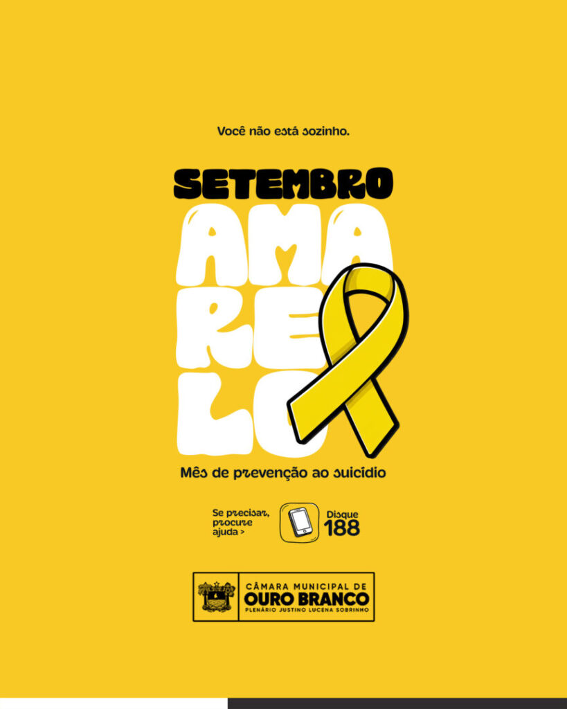 A Câmara Municipal de Ouro Branco se une, mais uma vez, à campanha Setembro Amarelo, movimento nacional de conscientização sobre a prevenção ao suicídio e valorização da vida.