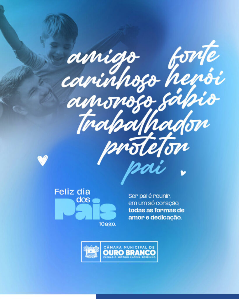 Neste Dia dos Pais, a Câmara Municipal de Ouro Branco homenageia todos aqueles que, com amor, responsabilidade e dedicação, são exemplo de cuidado e inspiração para suas famílias e para a nossa comunidade.