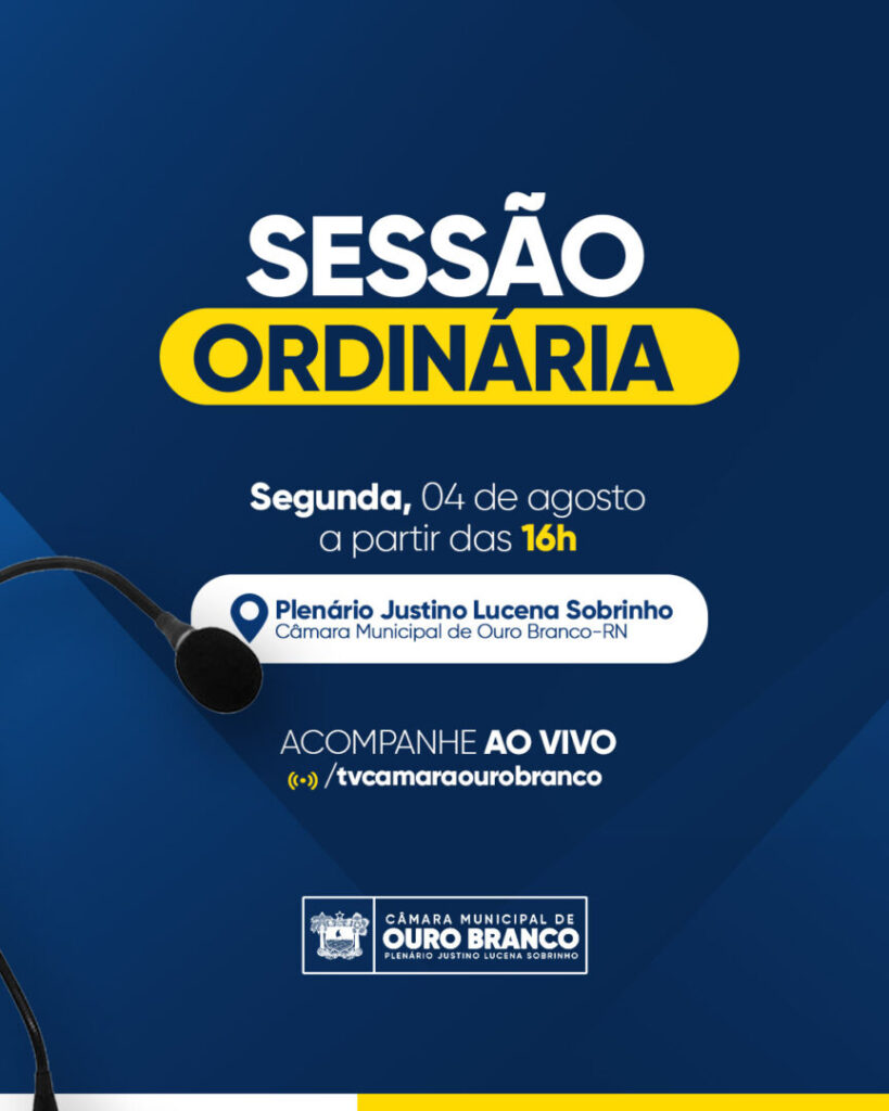 Após o recesso parlamentar, a Câmara Municipal de Ouro Branco retoma suas atividades legislativas nesta segunda-feira, 04 de agosto. Os trabalhos recomeçam com a primeira sessão ordinária do segundo semestre de 2025, realizada no plenário da Casa, a partir das 16h.